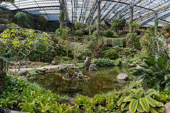 Ao contrário da estufa fria, a estufa quente tem uma cobertura de vidro, tornando a atmosfera deste espaço mais húmida e mais quente.